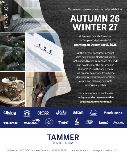 If a visit to the showroom is still missing from your calendar, please book a visit with your sales representative or sales@tammerbrands.fi for our new autumn-winter showroom 2026!