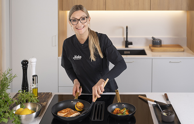 Teresa Välimäki brändilähettiläänä mukana lanseeraamassa Maku Kitchen Lifen 10-vuotisjuhlavalikoimaa.